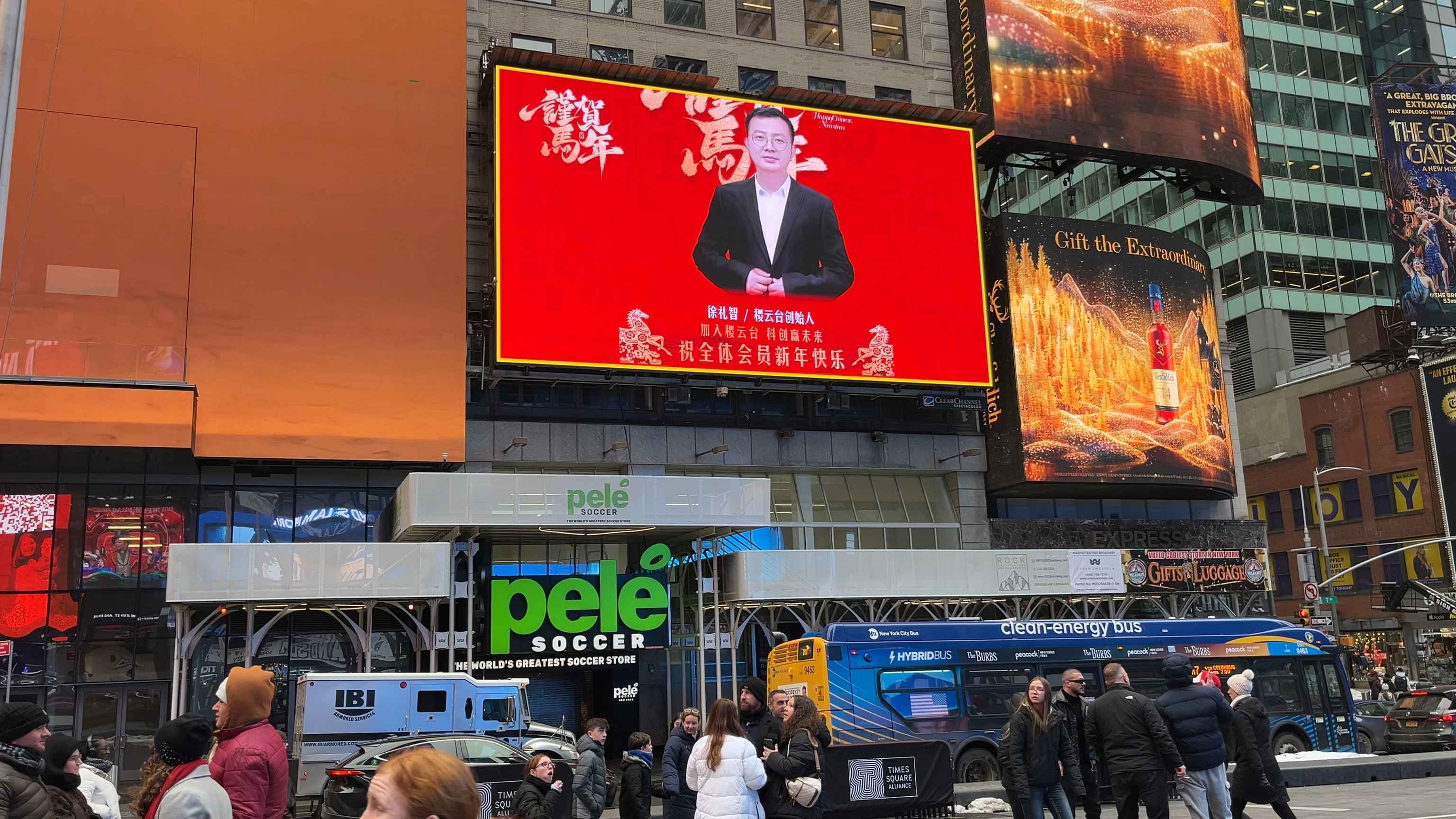 就在这个辞旧迎新的特殊时刻,义乌城市形象宣传片及央视2026年春晚义乌分会场邀约海报,与青岛啤酒、茅台、海底捞等中国消费者耳熟能详的领军品牌,共同选择在纽约时报广场的大屏上集中绽放 。它们与稷云台企业一起,构成了“中国品牌天团”的豪华矩阵,向世界传递中国品牌的硬核实力与独特魅力。