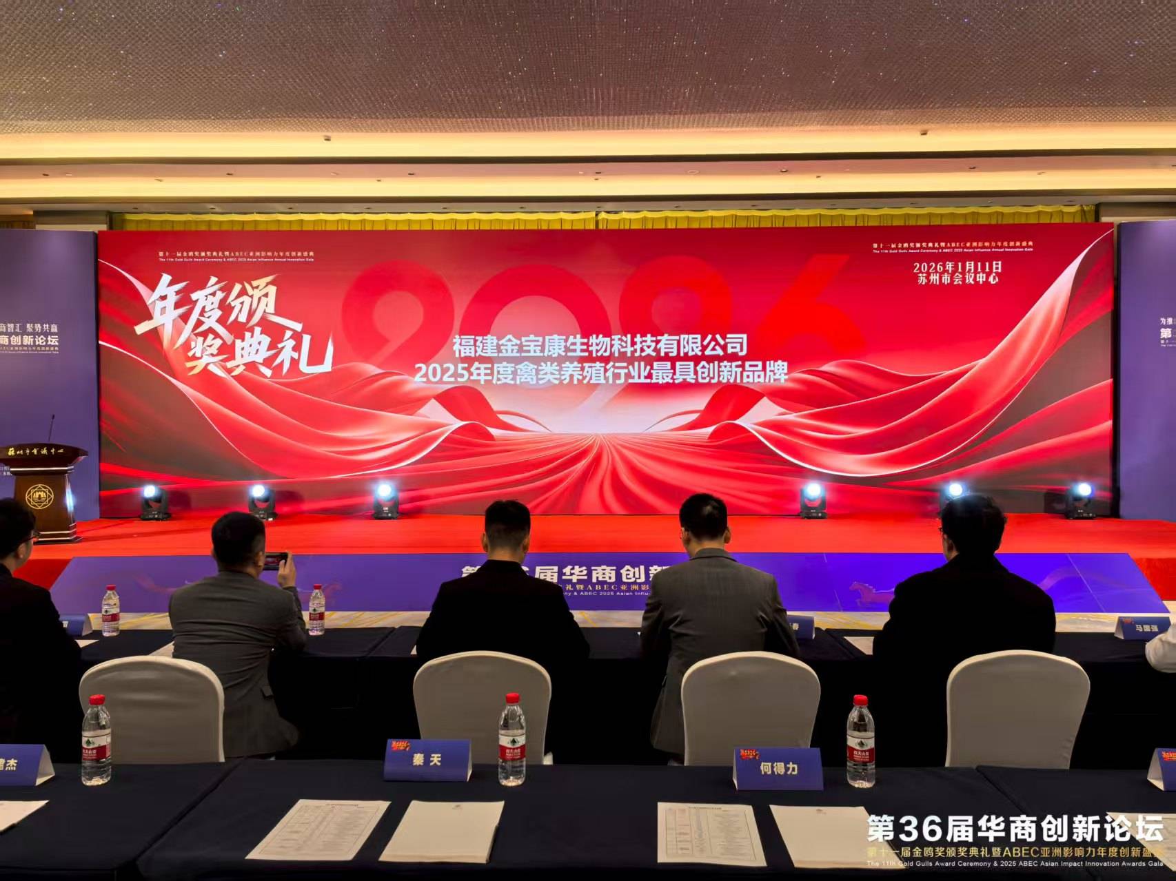 活动上揭晓了"ABEC亚洲影响力创新奖"评选结果,其中"福建金宝康生物科技有限公司"获得了"2025年度禽类养殖行业最具创新品牌"。